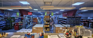 V predajni ponúkame širokú škálu stavebného materiálu (tehla, ytong, porfix a iné), vrecovaného materiálu (cementy, lepidlá, malty), zámkových dlažieb, tepelných izolácií, farieb a lakov, stavebnej chémie, náradia, elektronáradia, interiérových dverí a spojovacieho materiálu. Súčasťou predajne je novo zrekonštruované kúpeľňové štúdio s ponukou obkladov, dlažieb, sanity a doplnkov.
