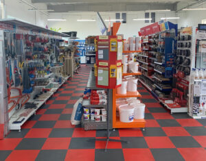 V predajni ponúkame širokú škálu stavebného materiálu (tehla, ytong, porfix a iné), vrecovaného materiálu (cementy, lepidlá, malty), zámkových dlažieb, tepelných izolácií, farieb a lakov, stavebnej chémie, náradia, elektronáradia, interiérových dverí a spojovacieho materiálu. Súčasťou predajne je novo zrekonštruované kúpeľňové štúdio s ponukou obkladov, dlažieb, sanity a doplnkov.
